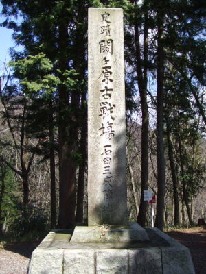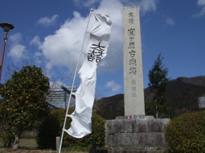 関ヶ原古戦場決戦地碑 わざとらしい位の青空にちょっと切なくなりました・・・。 約406年前に、本当にここで戦があったのかと思うと色々と複雑です。 ちょうどお昼休みになった様で、正面の小学校から子供が大勢出てきて みんなで遊んでました。 やっぱりちょっと切なくなりました・・・。 平和な時代で良かった(´・ω・`)とか思っちゃいました。 ちなみに、歴史民俗資料館からここまでは、緩やかな上り坂が延々続きます。 緩やかだからと思ってはしゃぐと、到達する前に息があがってバテます。 ええ、俺はしっかりバテました。 脇に流れる用水路の水がびっくりする位キレイで、バテた俺にはこの水が 飲めない水だってのが辛い位にキレイで美味そうに見えました・・・。(ヲイ) てか、旗の向きとしてはいい感じなのですが、この向きだと残念な事に 文字は逆になっちゃうんですよね〜・・・(;´∀`) |