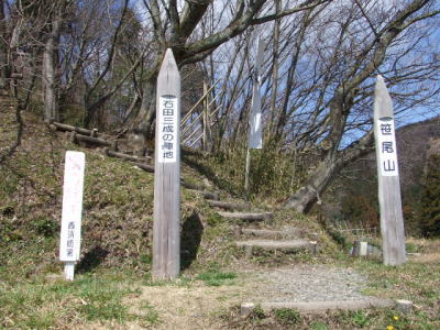 笹尾山 左近の陣跡すぐ横から、笹尾山への登り口があります。 ほんの少し上がるとすぐに殿の陣跡到達。 息が上がる前に着いちゃいます。 でも決戦地碑に到達する前に息が上がっていた俺は、ここに到達するまでに すでに「(:.;゚;Д;゚;.:)ハァハァ」してました。 なので「息が上がる前に着いちゃいます」とか 偉そうに言える立場じゃないですね。 気分的には'`ァ,、ァ(*´Д`*)'`ァ,、ァな感じで・・・・・・・・・・・ 不謹慎ですみません・・・・・出直して来ます。 |