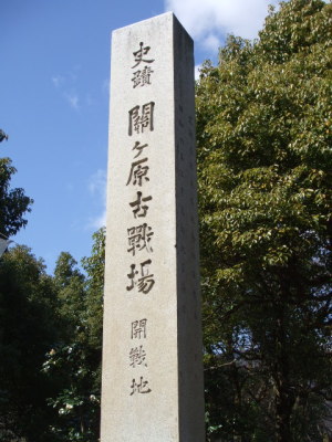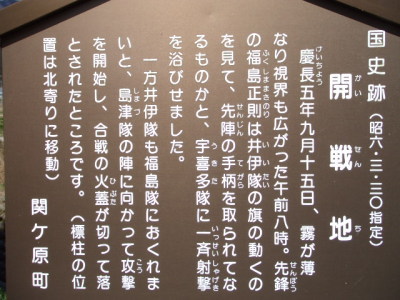 関ヶ原合戦開戦地碑と案内板 小西行長陣跡のすぐそばです。 小西の陣から目をやり、諸将の旗がたっていて気付いたとか・・・(ノ∀`) |