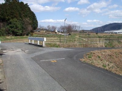 開戦地まん前の道。 この道をガードレールの方に向かうと 島津の陣跡に着きます。 そうです、あんな草ボーボーの川っぺりを行かずとも こんなに良い道があったんです・・・(TДT) それにしても本当にのどかな町です。 約406年前、ここでそんな大きな戦があったなんて 思えない位のどかで穏やかな町でした。 いっそわざとらしい位にキレイな空が よりいっそうそんな気分にさせるのでしょうか・・・。 |